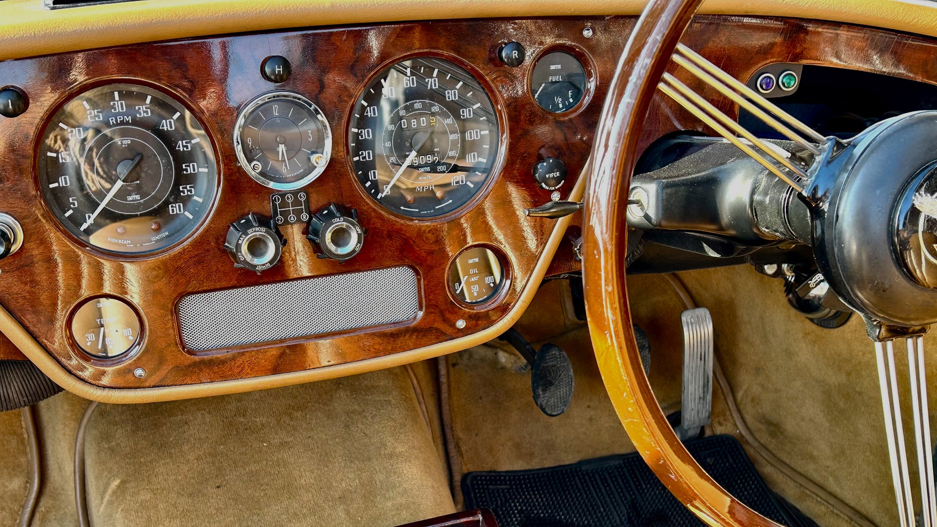 Dass er sich heute nicht mehr im ursprünglichen Metallic Grey mit rotem Interieur präsentiert, sondern in Dunkelgrün mit beigem Interieur, tut der Faszination für dieses seltene Stück britischer Automobilgeschichte keinen Abbruch, im Gegenteil: Das Farbkleid passt wunderbar zu diesem britisch-schweizerischen Auto aus der goldenen Ära des Gran Turismo.