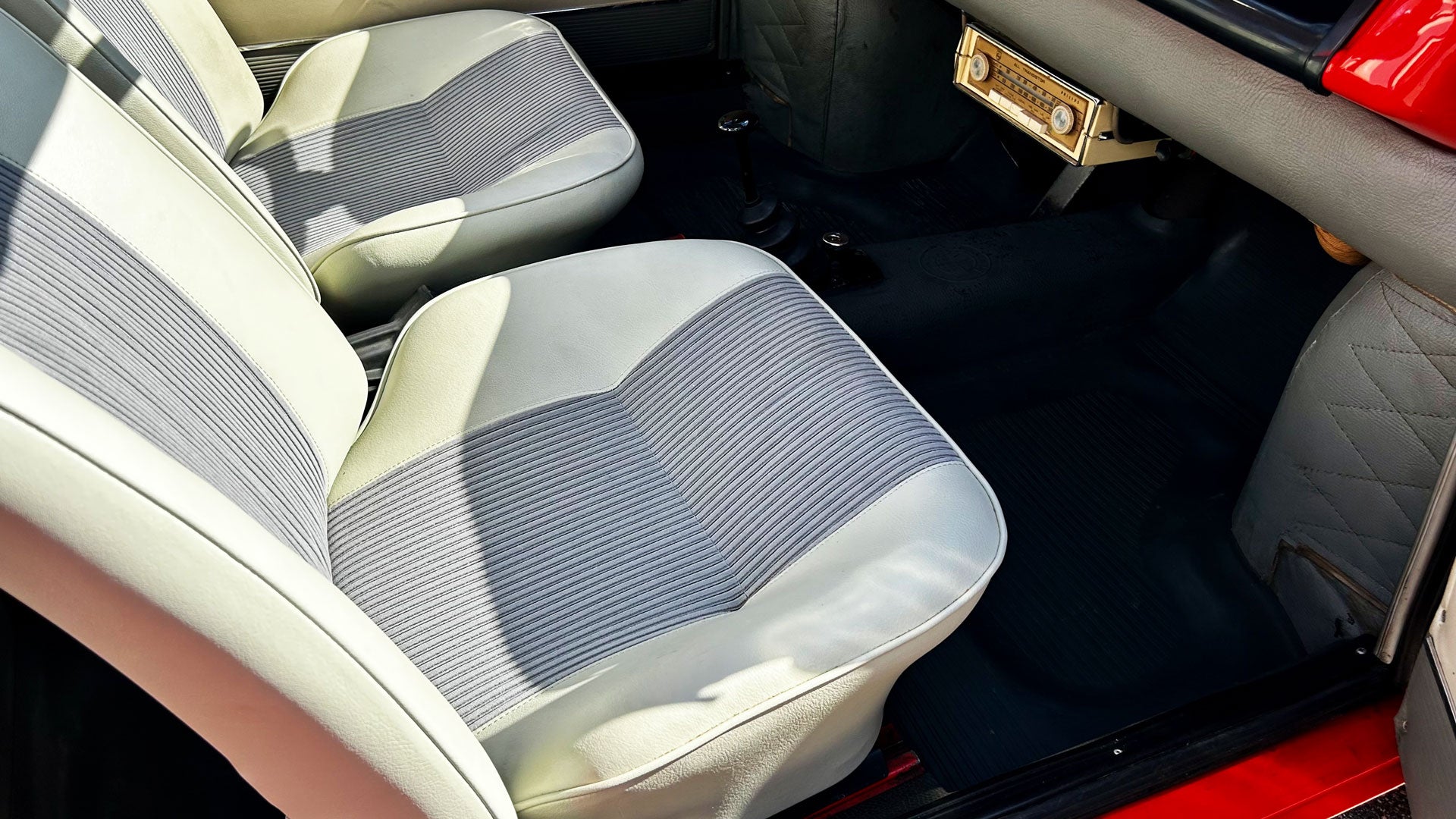 Der hier angebotene 700 strahlt in der Farbe Oleanderrot und ist mit einem herausnehmbaren Transistorradio ausgerüstet. Der Lack wurde kürzlich gepflegt und das Interieur ist in einem wenig patinierten Zustand, da wahrscheinlich erneuert. Wir bieten diesen seltenen Kleinwagen aus der goldenen Ära der Hochkonjunktur mit Veteranen-MFK vom Herbst 2024 an.