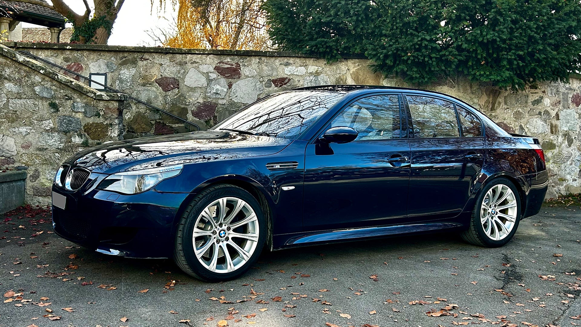 Unser Auktionsfahrzeug ist ein Ersthandauto in der bestechend schönen Sonderlackierung Blue Onix Metallic. Der originale Kaufvertrag von der Auslieferung bei der Titan Garage in Zürich im Jahr 2005 ist noch vorhanden. In 20 Jahren kommen bei diesem Sommerauto erst knapp 73'000 km zusammen, nachvollziehbar anhand des lückenlos geführten Serviceheftes. Die restliche Zeit verbringt der M5 in einer Garage und ist heute noch in einem neuwagenähnlichen Zustand. Trotz ihres vergleichsweise jungen Alters ist diese Limousine kein normales Gebrauchsauto, sie ist ein kantiges Charakterfahrzeug, das Fahrspass, Luxus und Rennsport-Technik auf unnachahmliche Weise kombiniert.