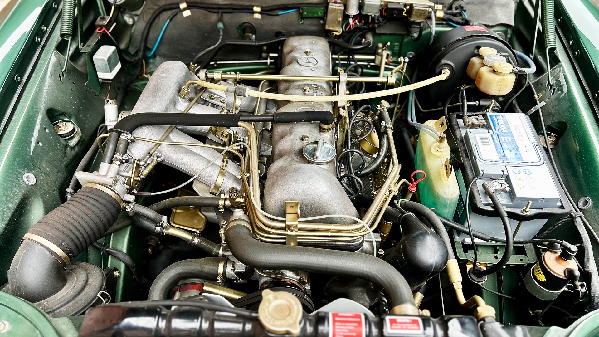 2008 wird der Mercedes für fast 100'000 Euro aufwändig teilrestauriert, wobei Teile des Originallacks immer noch vorhanden sind. Im Zuge dieser Arbeiten wird insbesondere der Motor komplett zerlegt und in vielen Teilen erneuert. Ein Wertgutachten von 2009 bescheinigt diesem 280 SE einen Gesamtzustand mit der Note 2+, wobei die technischen Komponenten fast durchwegs mit der Note 1 bewertet werden. Ein feines, gepflegtes Cabrio, bereit für die nächste Grand Tour durch Europa und im Besitz von deutschen Papieren.