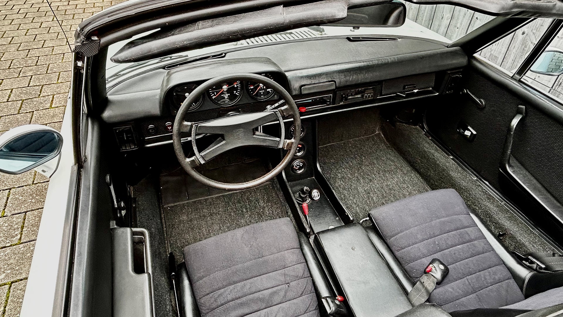 Eine sehr moderne Variante bringen Volkswagen und Porsche Ende der 1960er-Jahre auf den Markt, auf dem Höhepunkt des Wirtschaftswunders. Seiner wagemutigen Linie steht das Targadach besonders gut. Der hier angebotene 914er ist ein eher spätes Exemplar von 1974. Er profitiert daher nicht nur von einem verbesserten Getriebe und weniger Rostanfälligkeit, er wird auch mit dem damals relativ neu erhältlichen 2-Liter-Vierzylindermotor bestellt.